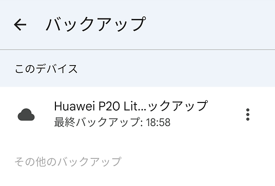 「最終バックアップ」の横にバックアップ日時が表示されています